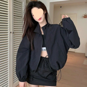 立领晒外套女2025夏季新款宽松抽绳短款休闲开衫拉链夹克上衣