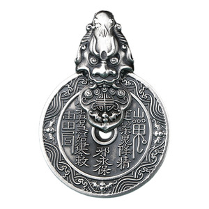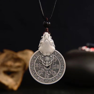 山鬼花钱貔貅吊坠国潮风男女个性复古八卦可旋转挂件配饰项链