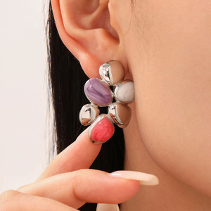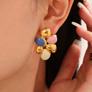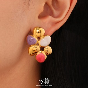 方糖炫彩滴油花朵耳环法式小众轻奢感气质不规则女士耳钉饰品批发