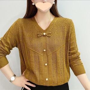 秋冬领时尚打底衫简约百搭镂空针织衫大码宽松短款长袖毛衣上衣
