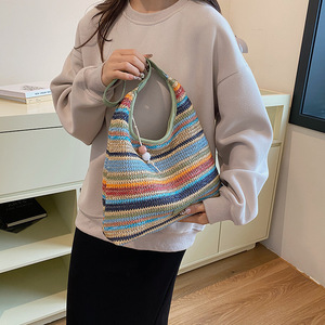 カラフルな織りトートバッグ女性のための 2025 新しいファッショナブルなショルダーバッグ大容量ホリデースタイルわらバッグ