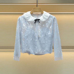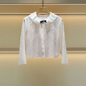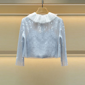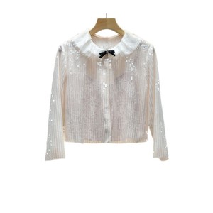 Moshu Weiya 2025 秋の新作スイートリボンドールカラースパンコールシングルブレストニットシャツ 4S10D