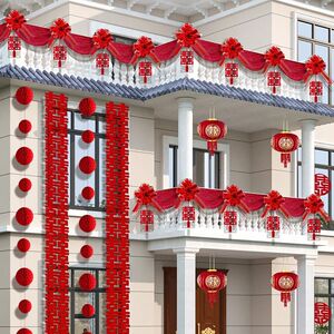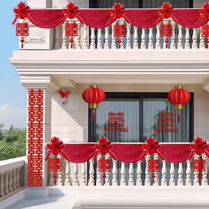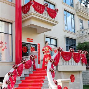 农村阳台男方结婚布置婚房装饰婚礼院子庭院场景楼梯扶手套装新房