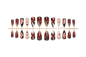 2025 ハロウィンサーカスピエロ新アーモンドウェアネイルダークパッチマニキュアフェイクネイル完成品