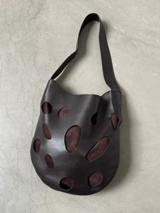 网红同款时尚百搭托特镂空拼接绒布设计单肩斜挎包包