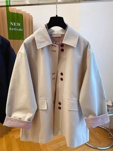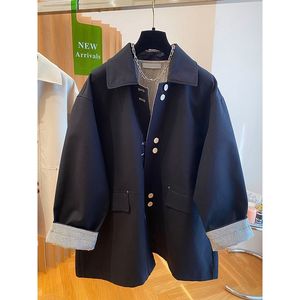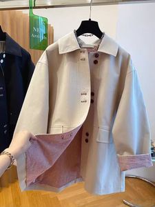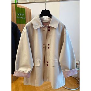 2025春秋季新款韩版条纹拼接设计百搭休闲文艺风中长款防风风衣
