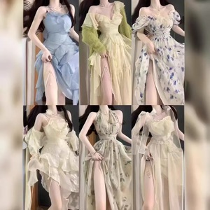 2025 フレンチリゾートスタイル海辺の写真撮影ドレススーパーフェアリーフリルエレガントロングスカートサスペンダースカートビーチスカート