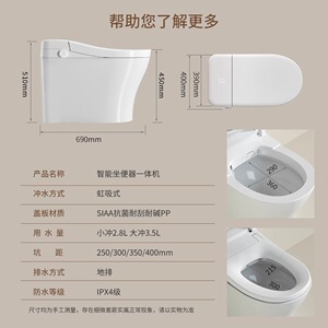 タンク付きサイフォン全自動スマートトイレ、人間工学に基づいたオールインワン、水圧制限なし、インスタント温水トイレ