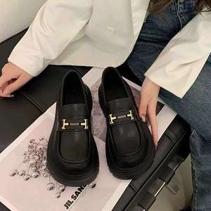 英国厚底ローファー女性用 2025 新作春夏通勤ソフトソールシューズ超ソフト万能靴黒靴