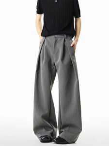 アメリカン立体I字プリーツカーブソードパンツ 男女兼用 夏 Aラインシルエット 通勤カジュアルパンツ 高級着痩せワイドパンツ