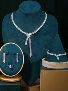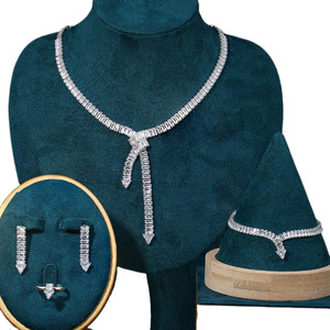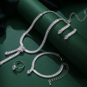 ヨーロッパとアメリカのクロスボーダーファッションホットセールジュエリーフルダイヤモンドシンプルなネックレスイヤリングブレスレット4点セットウェディングジュエリーセット