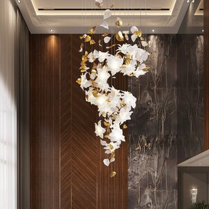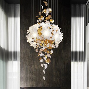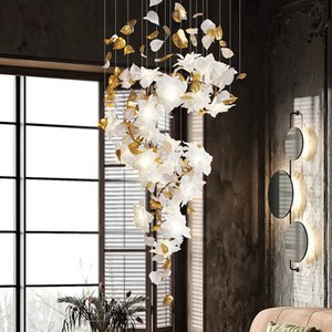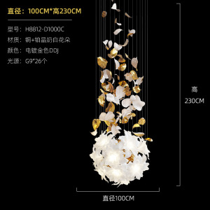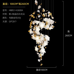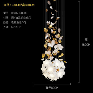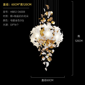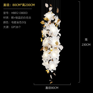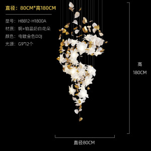 ヴィラ大型シャンデリア、高さのある中空リビングルームクリスタルランプ、雰囲気のあるライト高級ハイエンドデザイナーデュプレックス階段ランプ