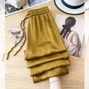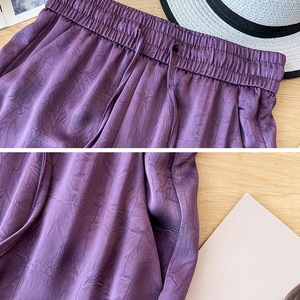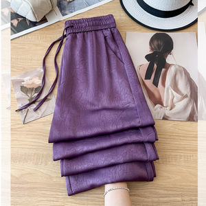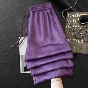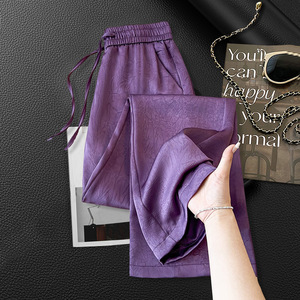 酢酸氷シルクワイドレッグパンツ女性の夏薄い 2025 新しいサテンジャカードドレープ弾性痩身紫色のストレートパンツ