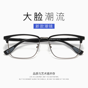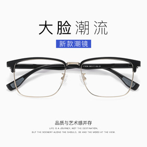 特大フレーム、大きな顔、ハーフフレームメガネフレーム、男性用幅広大型眉毛フレーム、近視メガネ、韓国風トレンド、度数調整可能
