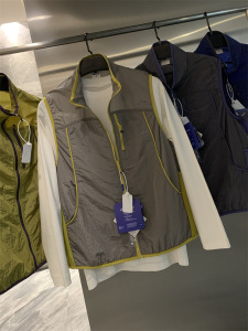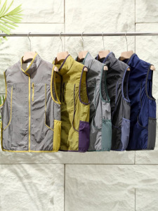 山のアウトドア!蝉の羽のように薄い!通気性と撥水性に優れています!カップルのカラーブロックスポーツとレジャースタンドカラーベストトレンディ