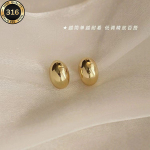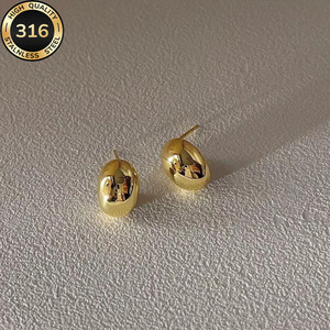 316 ステンレス鋼の甘くてクールなスタイルのシンプルな 18K リアルゴールドビーンズ光沢のある個性気質ピアスフリーの痛みのないイヤリング