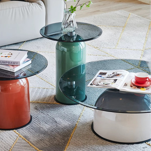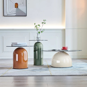 ミニマリストクリームスタイルクリエイティブガラスラウンドコーヒーテーブルサイドテーブル組み合わせリビングルームオフィス小さなアパートハイエンドティーテーブル