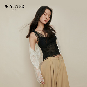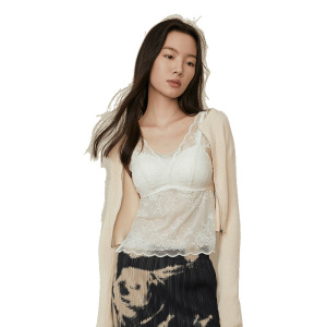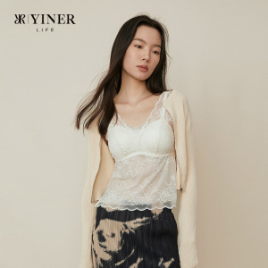 Yiner 下着 [同柄ガーゼ] 胸パッドと美しい背中のインナーが付いた女性用レースボトムキャミソール