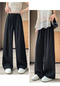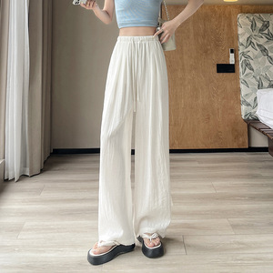 女性用のレイジーリラックスコットンとリネンのワイドレッグパンツ、ハイエンドのホワイトリネンパンツ、夏用の薄い伸縮性ウエストカジュアルフロアレングスパンツ