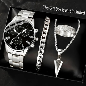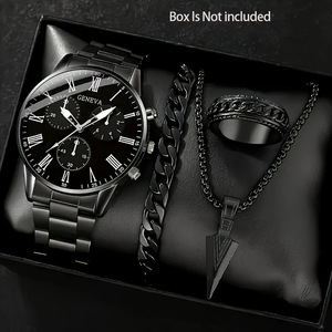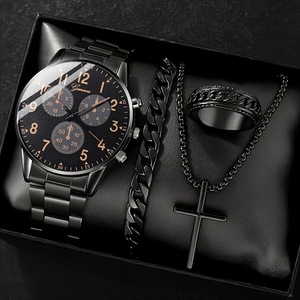 国境を越えた人気のメンズ腕時計、高級メンズビジネスガラスクォーツ時計、ネックレス、ブレスレット、リングの4点セット