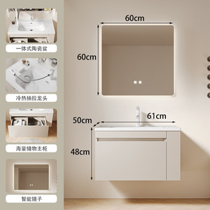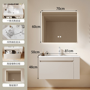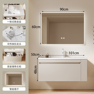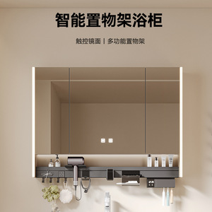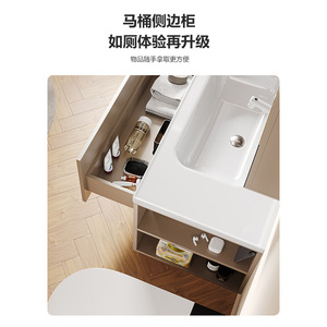 サイドキャビネット付き多層無垢材バスルームキャビネット、ソケット付きバスルームシンク、多機能ミラーキャビネット、洗面台キャビネットの組み合わせ