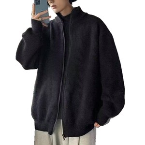 开衫毛衣男春秋季日系复古宽松慵懒风针织衫外穿男士拉链线衣外套