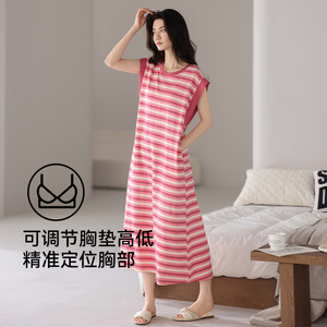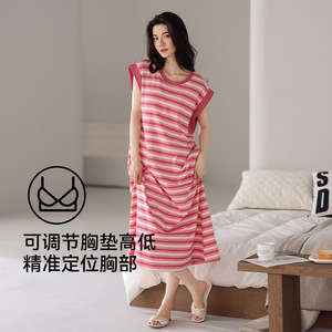 [胸パッド付き] レディースナイトガウン夏の純綿ノースリーブベストパジャマピンクホームウェアドレスは屋外で着用できます