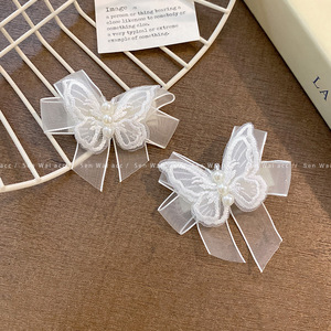 レトロなスーパーフェアリーホワイトメッシュ蝶真珠ヘアピン女性のための多用途甘いリボンヘアピン気質頭飾り