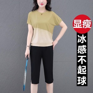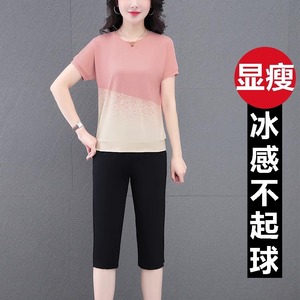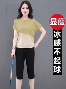 ブルーアイス感速乾スポーツスーツ女性のための夏の2025新しいママファッショナブルなドレッシングガウン半袖クロップドパンツ