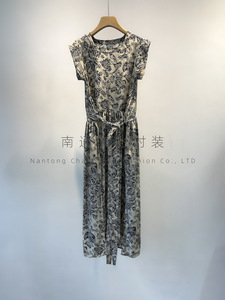LPライトラグジュアリーレトロ〜小さなフライングスリーブスクエアカラーウエストレースアップしわになりにくいレイジーリゾートスタイルティーブレイクプリントワンピース