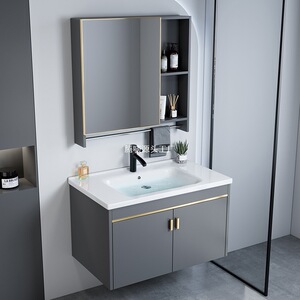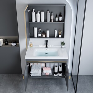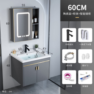 浴室洗面台キャビネット組み合わせスペースアルミニウム小型浴室キャビネット一体型セラミック洗面台家庭用洗面台