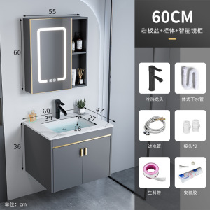 60 スレートグレープレート洗面器キャビネットコンプリートセット + スマートミラーキャビネット [幅 47] デフォッガー + ライト
