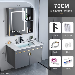 70 スレートグレープレート洗面器キャビネットコンプリートセット + スマートミラーキャビネット [幅 47] デフォッガー + ライト