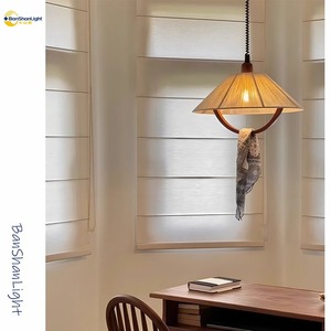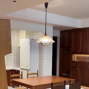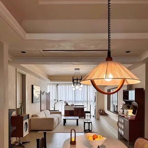 中古棉麻伸缩吊灯 美式日式复古餐厅书房吧台民宿布艺氛围灯