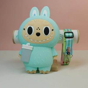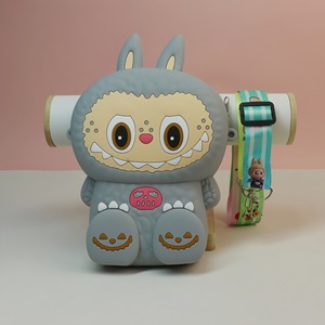 Labubu ラージ シッティング グレー 携帯電話バッグ - ショルダー ストラップ付き
