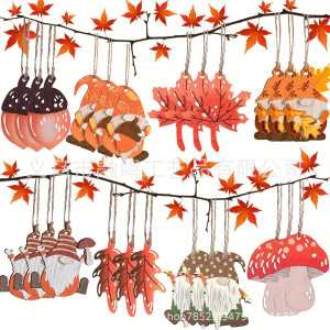 新しい秋の感謝祭木製装飾品秋ノームカエデの葉松ぼっくり吊り下げ装飾木製吊り下げクラフト装飾