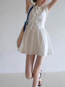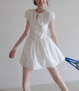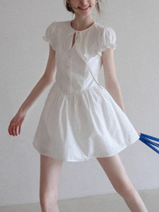 EGGK フレンチ刺繍ヘビーデューティ半袖ドレス女性の夏の新しいガーリースタイルスリムウエスト A ラインスカート
