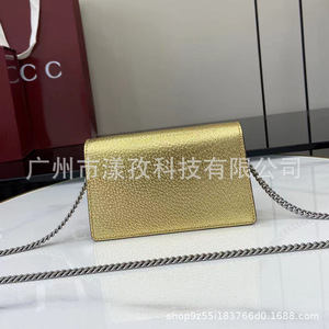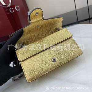 外贸 欧美新款酷奇G家酒神虎头包单肩斜挎链条包女士mini金色