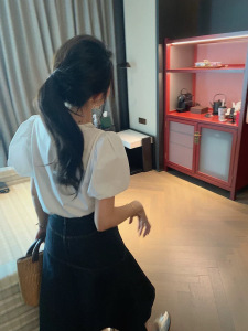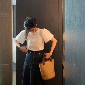 夏の女性用半袖シャツ、新しいスタイル、高級パフスリーブ、ランタンスリーブ、フランスのユニークでシックで美しいトップス