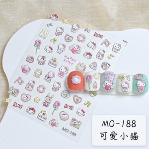 ネイルアートキティ猫アクセサリー猫ヘッドウェアラブルネイルパッチステッカーリボン kt 猫漫画ピンクレリーフインスタイル
