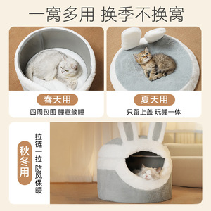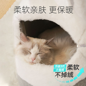 オールシーズン対応のキャットネスト、冬は暖かい、密閉型の猫の安全な巣、シェルターハウス、ペットソファ、冬用猫マット