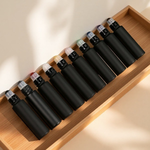 10ml;黒ローラーボールボトル - 彩英石 - 竹蓋;ガラス
