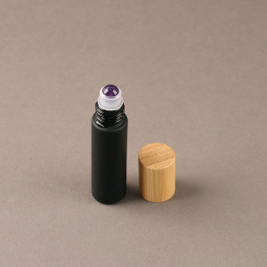 10ml;ブラックローラーボールボトル-アメジスト-竹蓋;ガラス