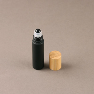 10ml;ブラックローラーボールボトル - 黒曜石 - 竹蓋;ガラス