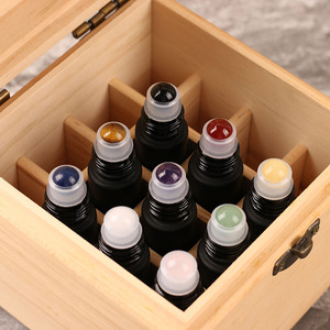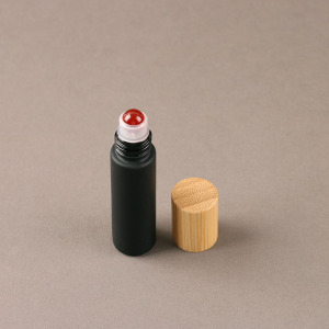 10ml;黒ローラーボールボトル-赤瑪瑙-竹蓋;ガラス