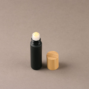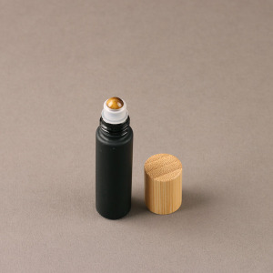 10ml;ブラックローラーボールボトル - トパーズ - 竹蓋;ガラス