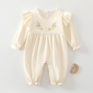 女の子の秋の子供服 2025 新しい韓国スタイルフライングスリーブ刺繍二層ジャンプスーツハーレム満月春と秋の服