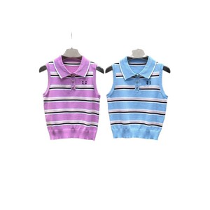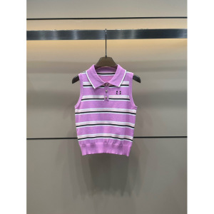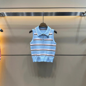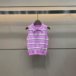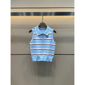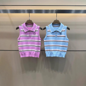 2025 新しい夏のスタイルのトライアンフロゴストライプニットノースリーブラペルプルオーバーベストスリムで多用途な女性のトップ