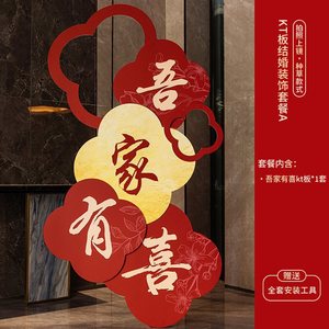 ホテルの結婚式の部屋のレイアウトセット kt ボードウェルカムカード男性のリビングルーム女性の寝室の結婚式の装飾ドレッシングガウン背景壁