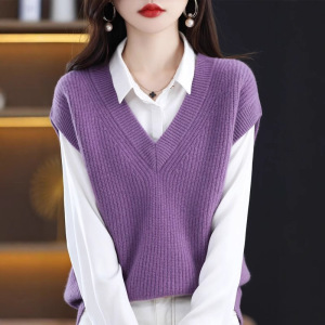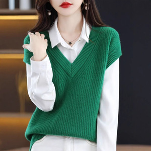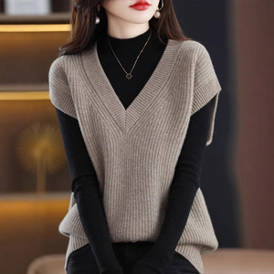 女性のためのニットベスト秋 2025 新しい V ネックプルオーバーベスト西洋スタイルルーズファッションノースリーブプルオーバーセーターベスト